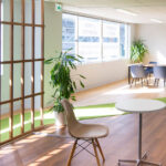 このプロジェクトは、会計事務所の下階に位置する打合せスペースのローコスト改修計画としてスタートしました。限られた予算のなかで、できるだけ空間の広がりと開放感を損なわず、受付から執務・会議エリアまでをゆるやかにつなぐことを意図しています。